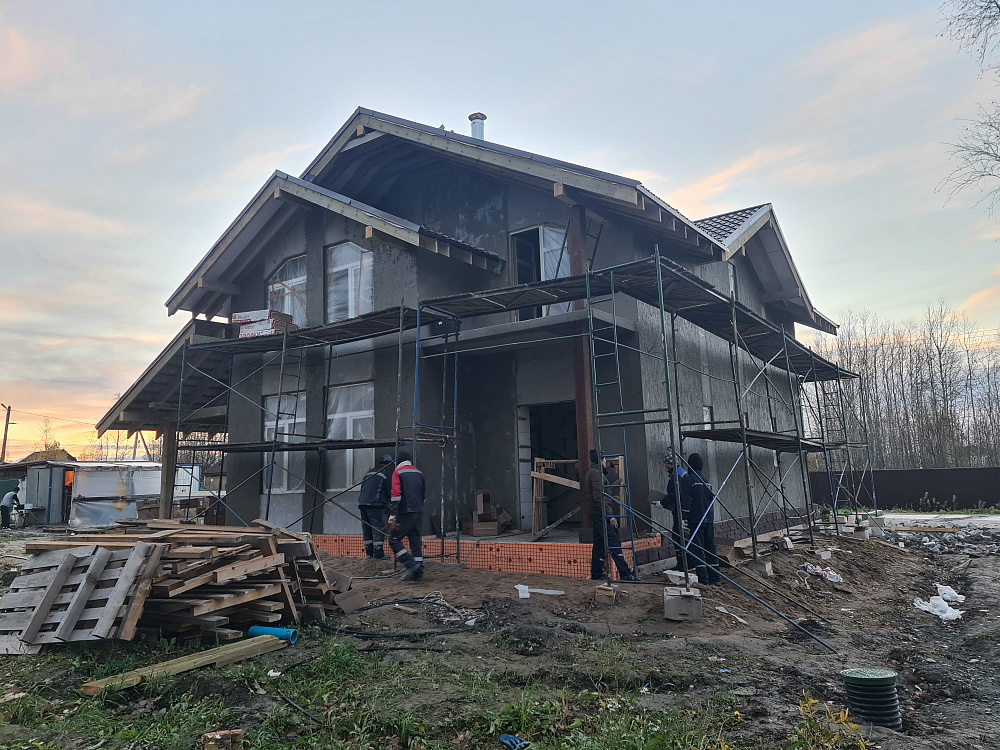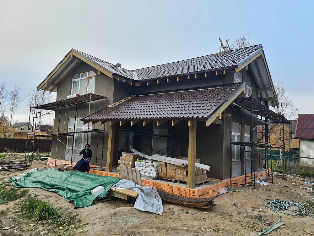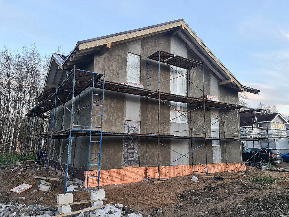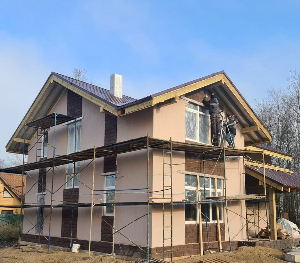 Строительство дома из газобетона — тёплый контур и декоративная штукатурка фасада