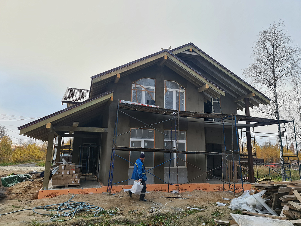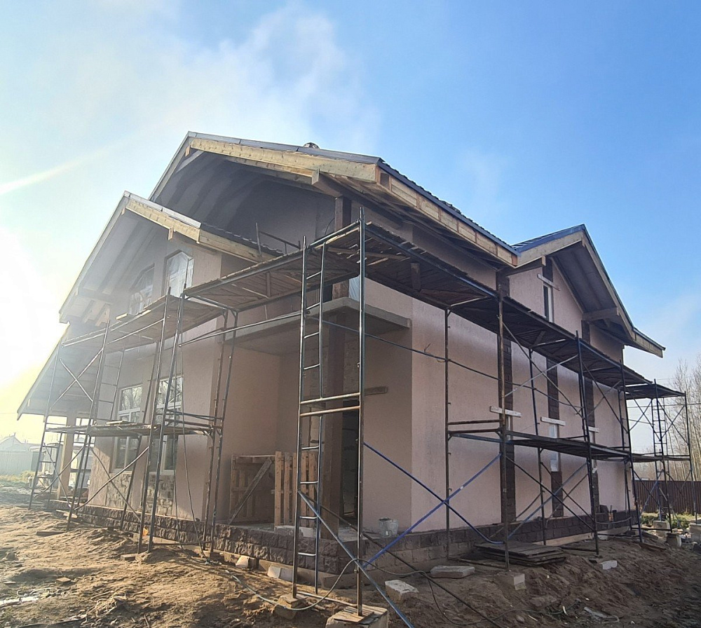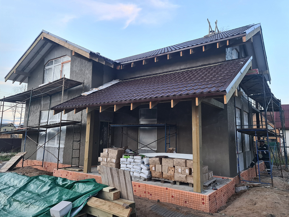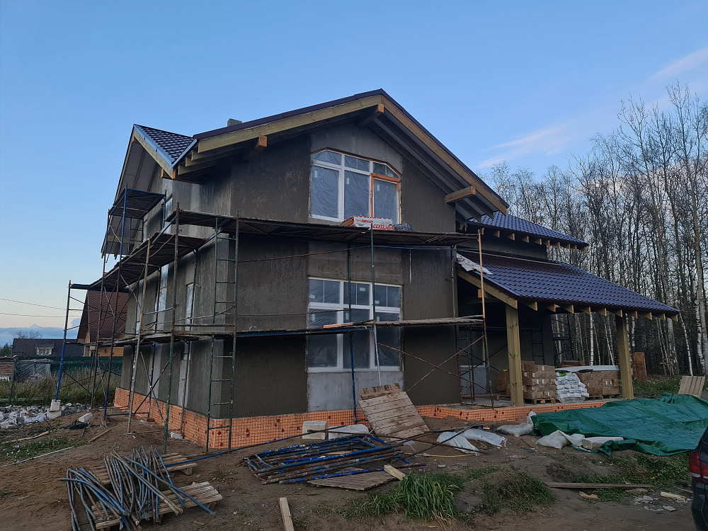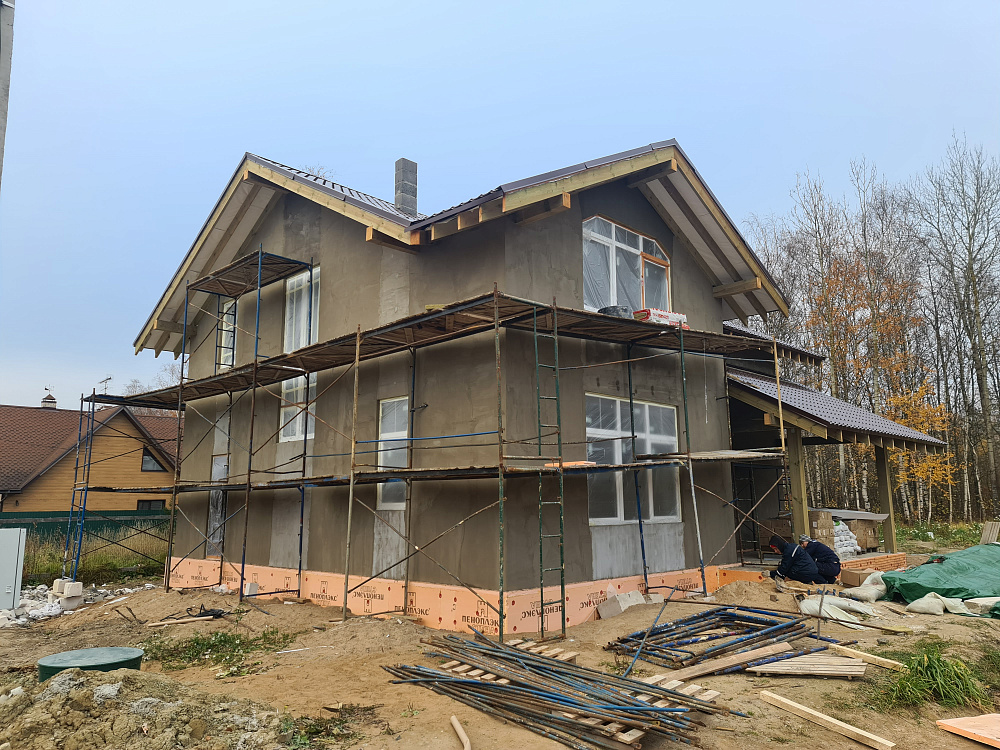Строительство дома из газобетона — тёплый контур и декоративная штукатурка фасада