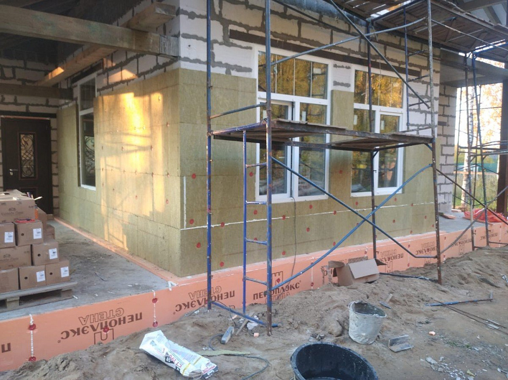 - Утепление фасада минераловатными плитами Rockwool.