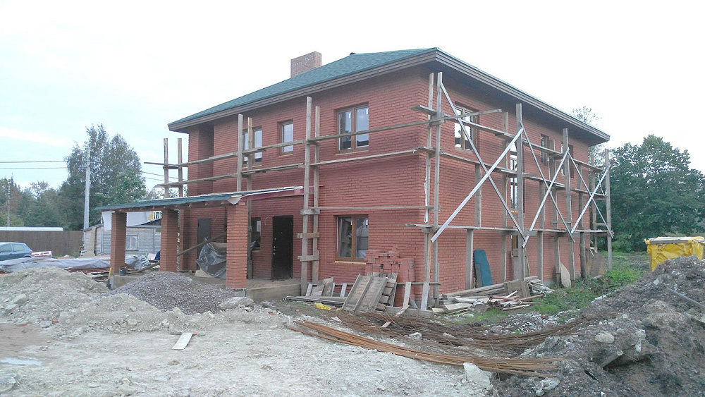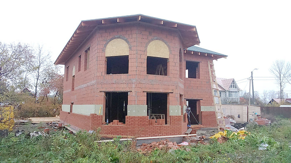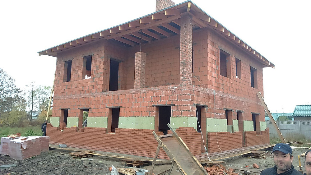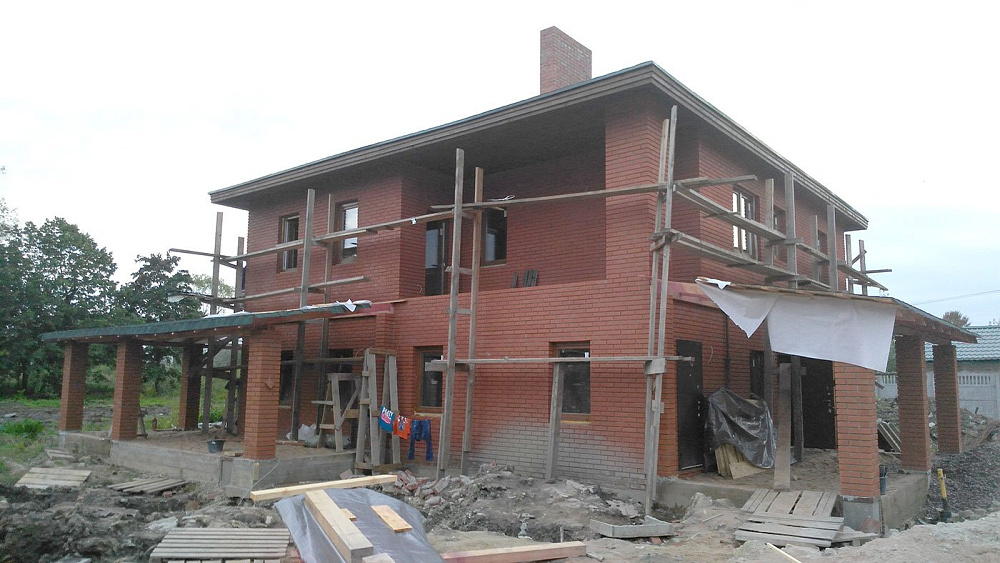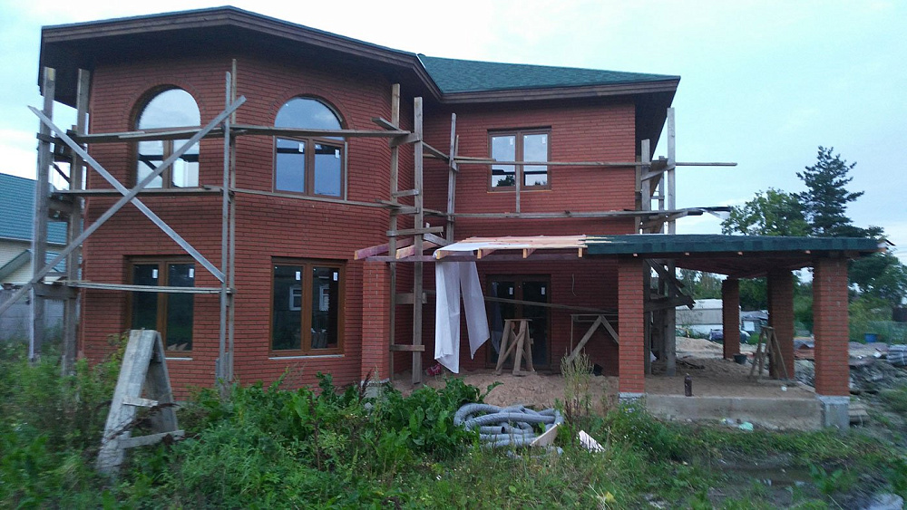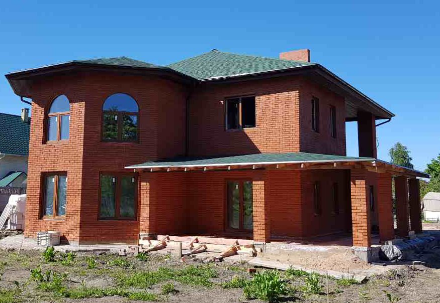 Дом из керамических блоков. Облицовка фасада кирпичом.