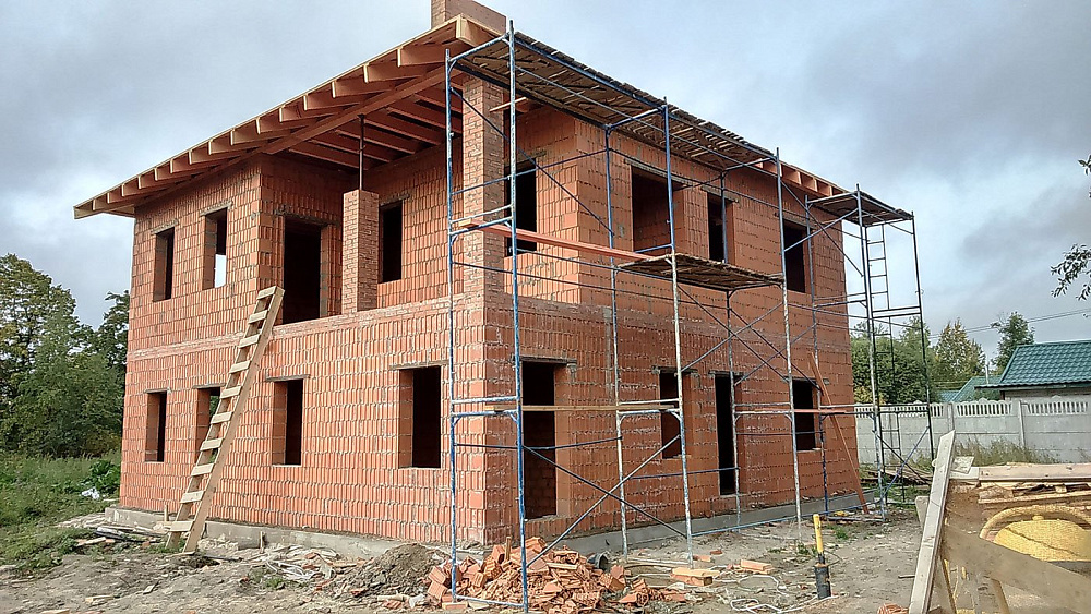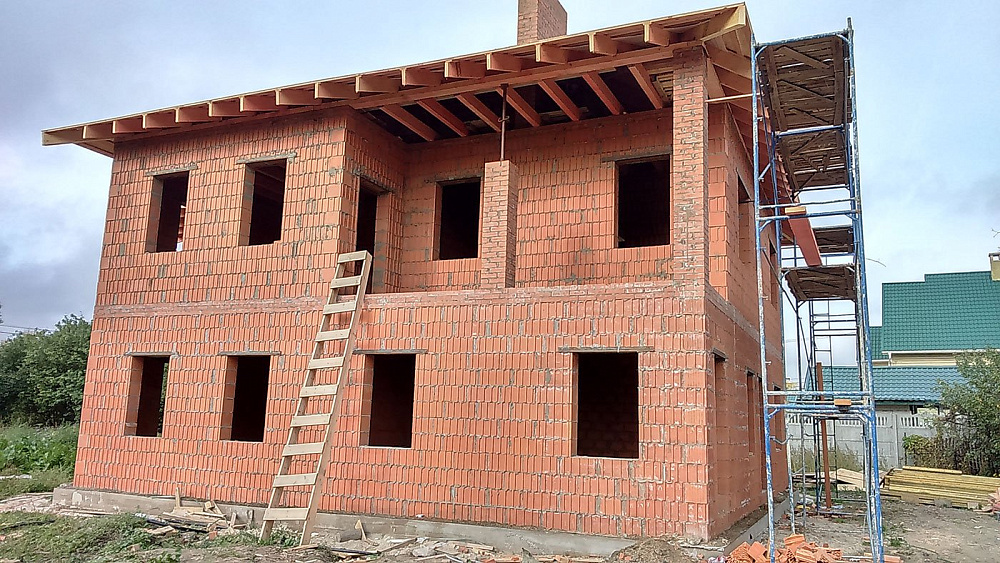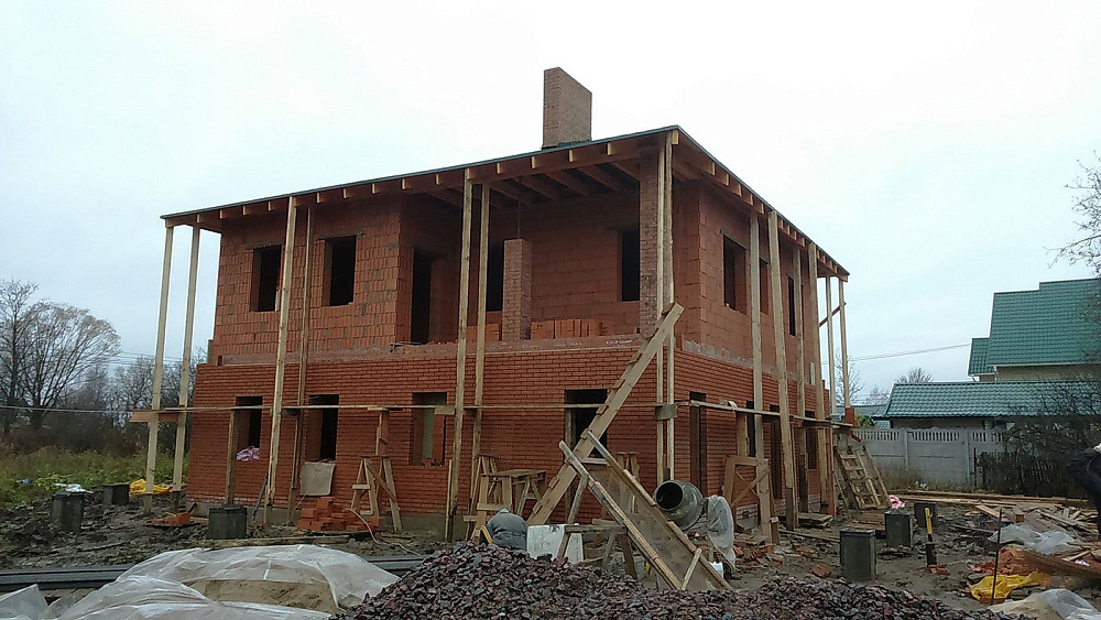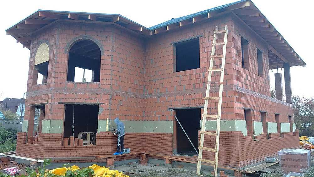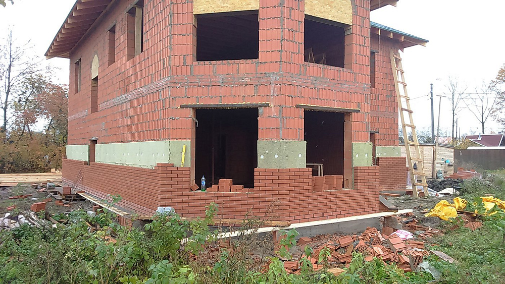 Дом из керамических блоков. Облицовка фасада кирпичом.