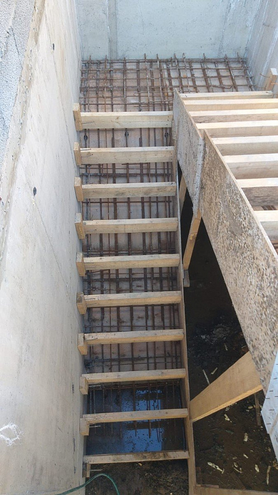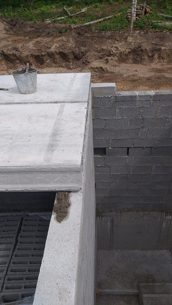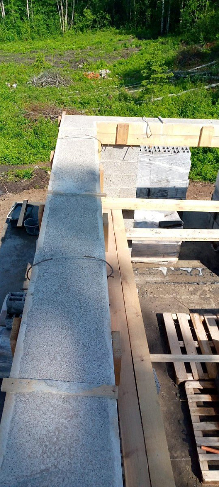 - Стены залиты с помощью сборной опалубки, смонтированной автокраном со стрелой 26 метров