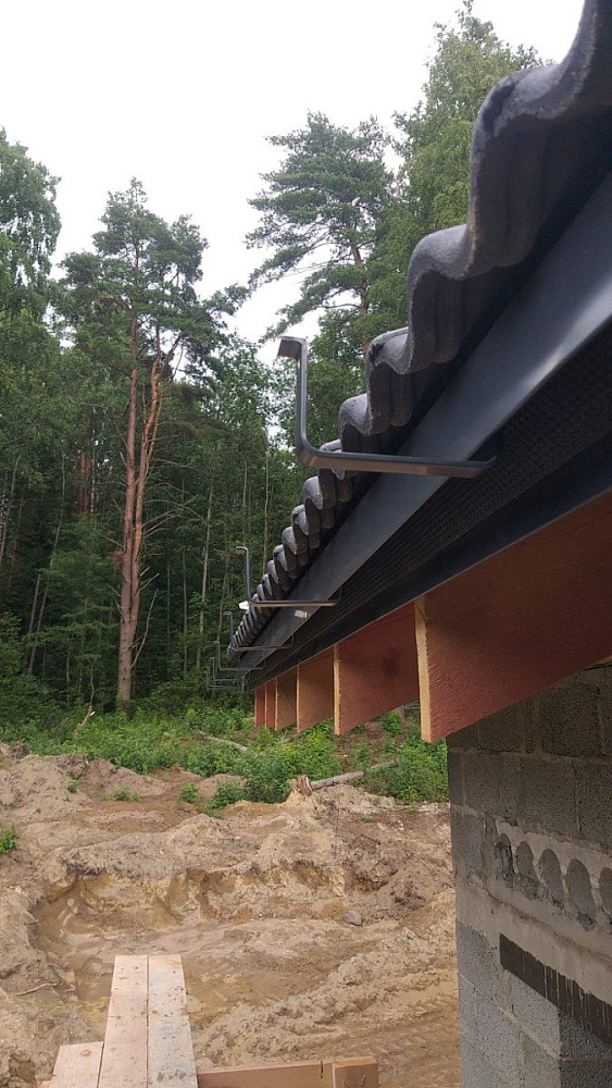 - По периметру дома за контуром отмостки проложен дренаж из труб диаметром 160 мм