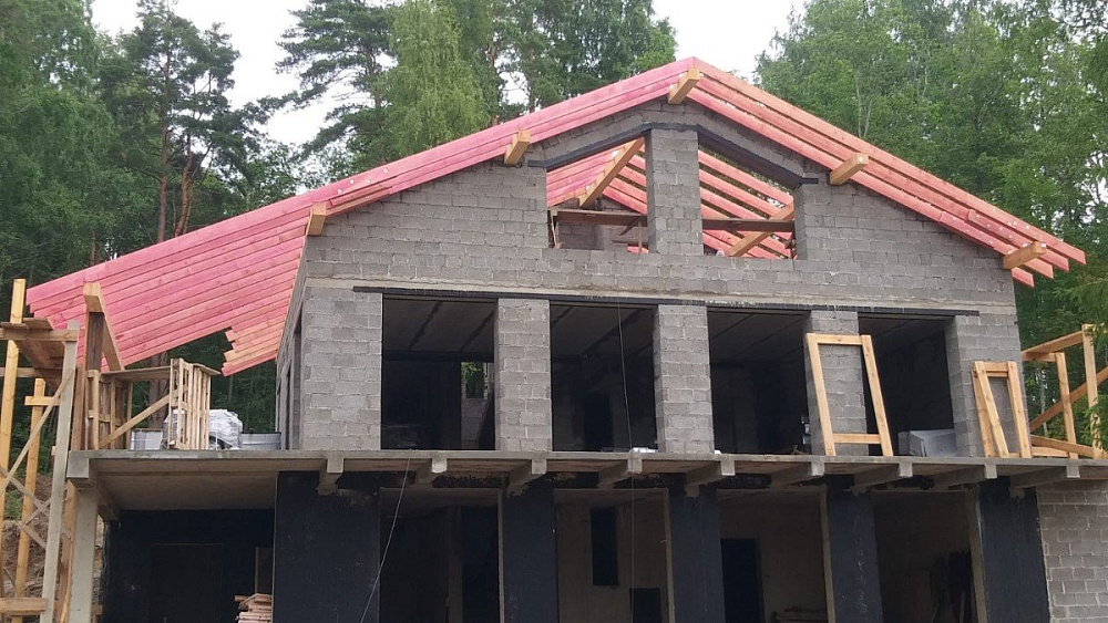 - Конструкции из керамзитобетонных блоков аналогично первому этажу