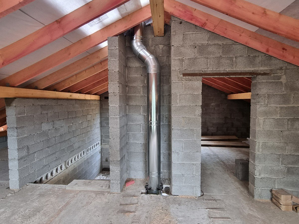 - Перекрытие между первым этажом и мансардой — сборные железобетонные панели заводского изготовления толщиной 220 мм