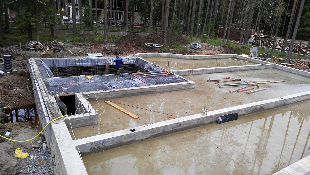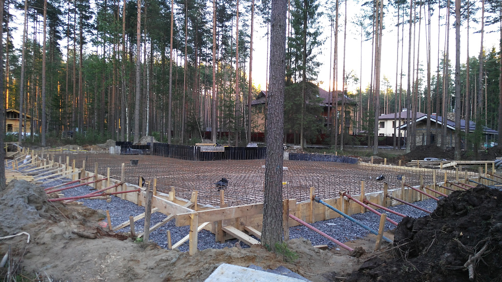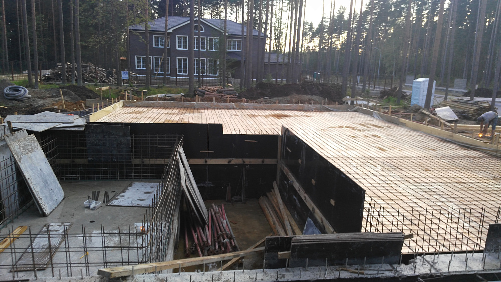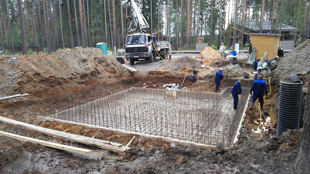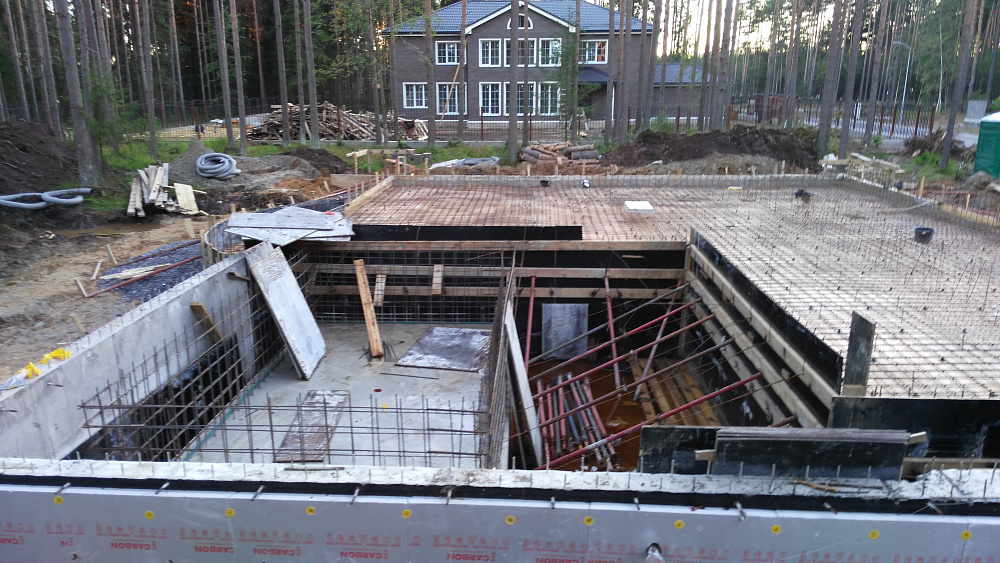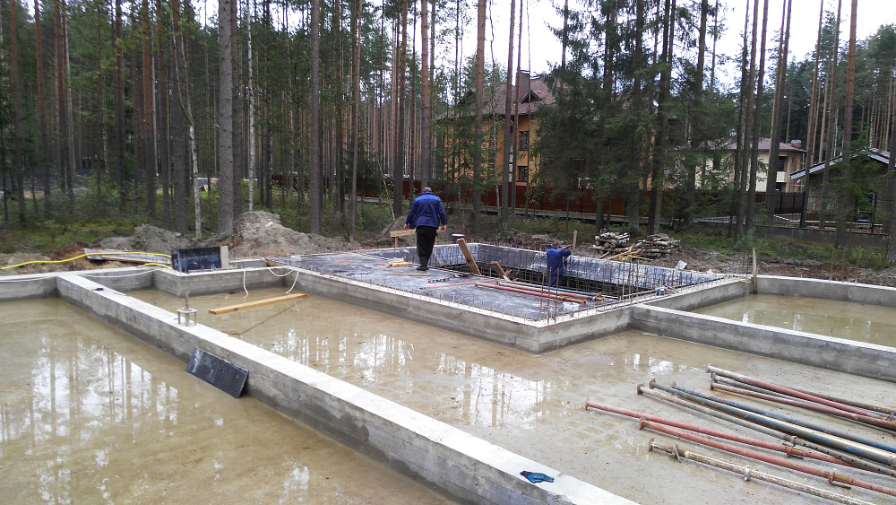 Фундаментная плита с бассейном в коттеджном посёлке Охтинский Парк