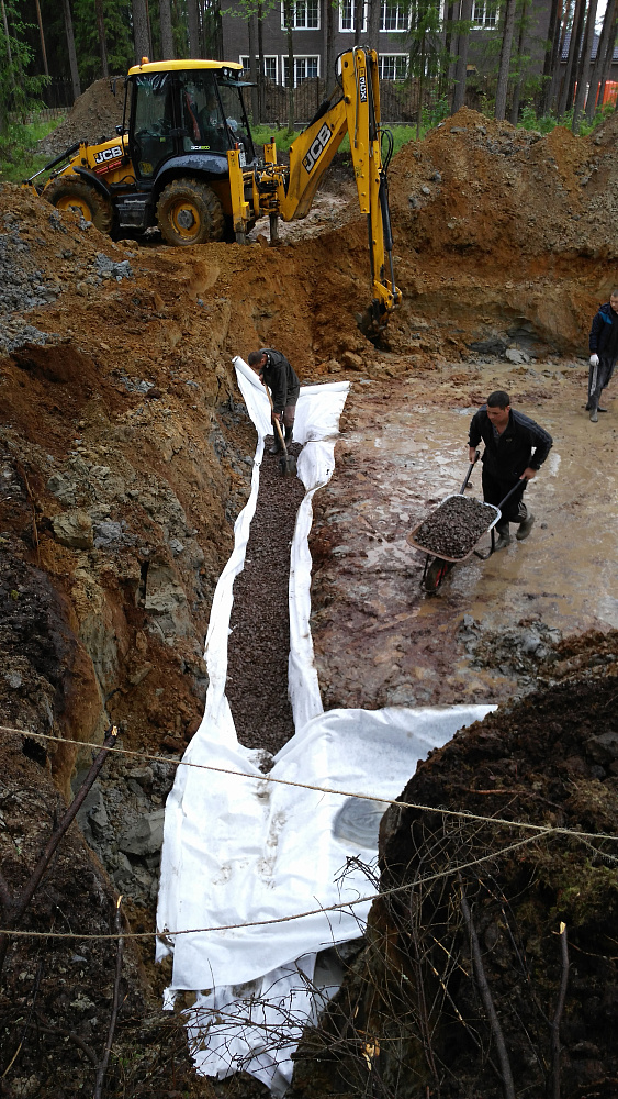 - монтаж дренажной системы по периметру фундамента;