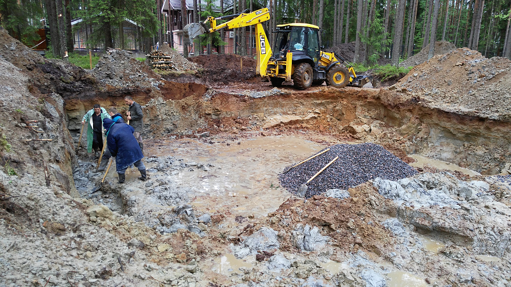 - разработка котлована под фундаментную плиту и бассейн;