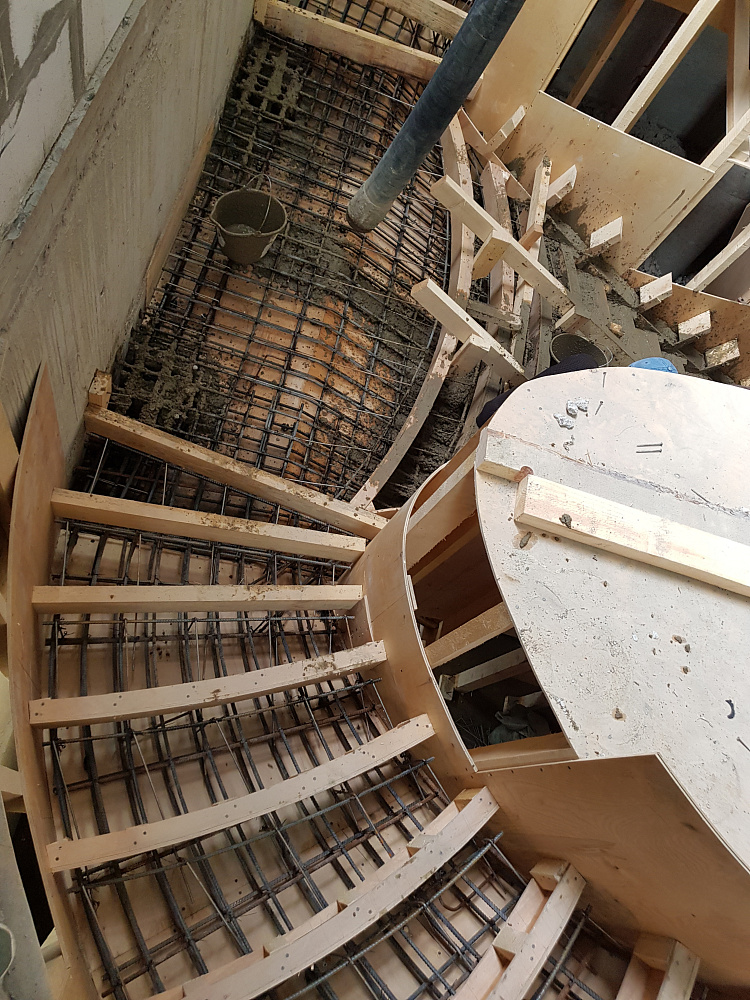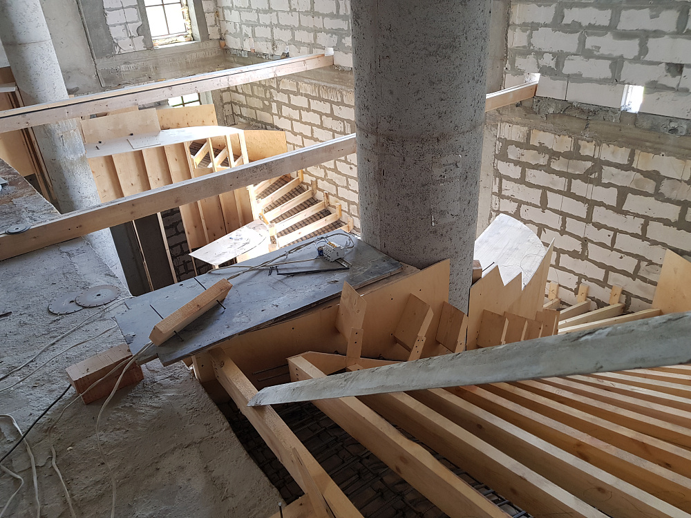 Мы построили более 200 монолитных лестниц в различных зданиях: от частных двухэтажных домов до многоквартирных жилых комплексов. В нашем портфолио вы найдете примеры прямых маршевых лестниц, Г-образных конструкций с площадками, винтовых решений и необычных форм.