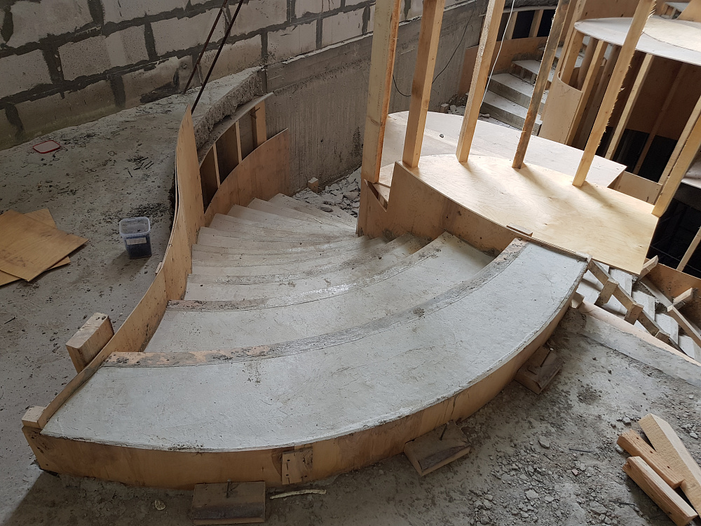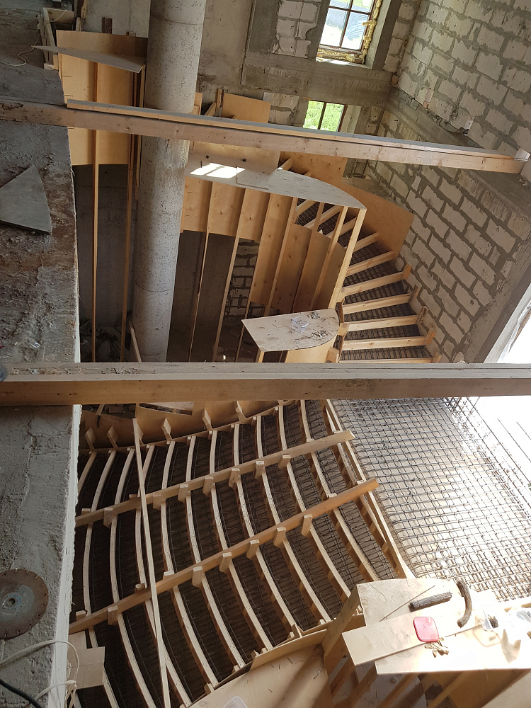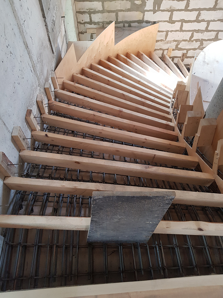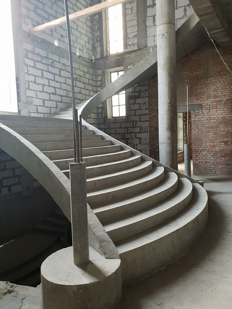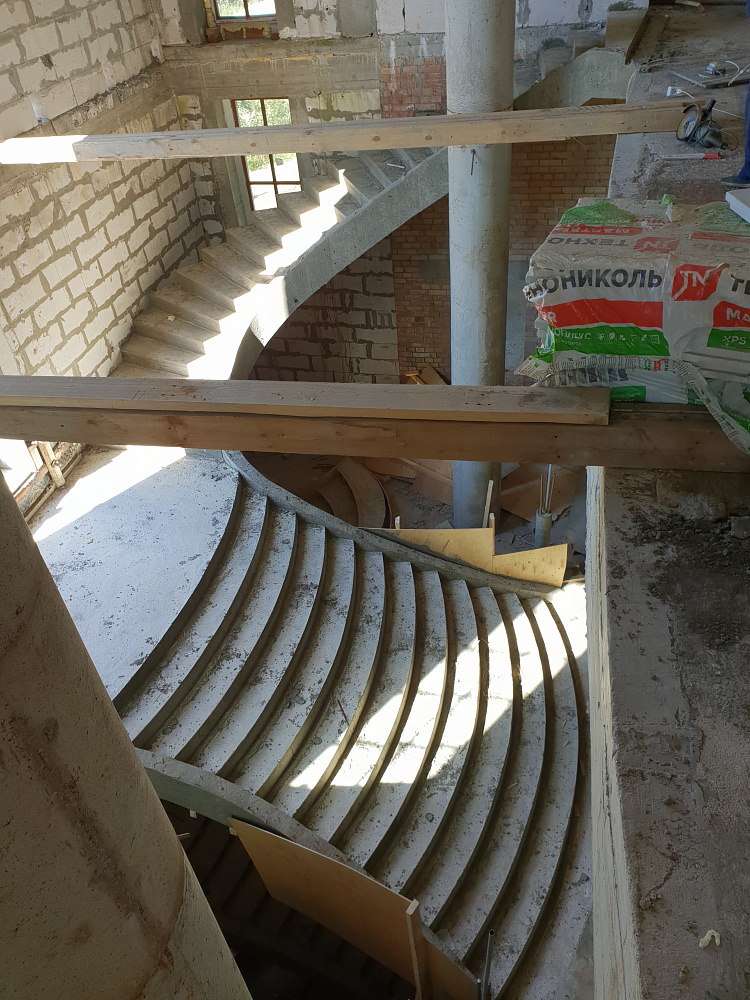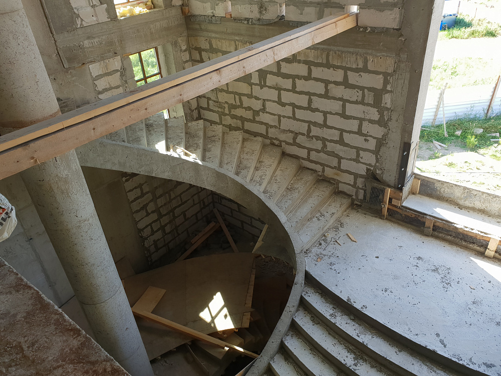 Каждый объект — это сочетание инженерного мастерства и строительной честности. Мы используем качественный бетон марки не ниже В25, армируем по СНиП, проверяем ровность и соответствие проекту. После демонтажа опалубки лестница готова к облицовке или может стоять в естественном виде.