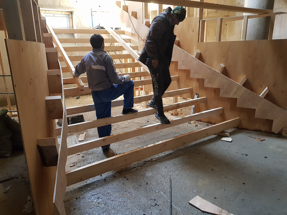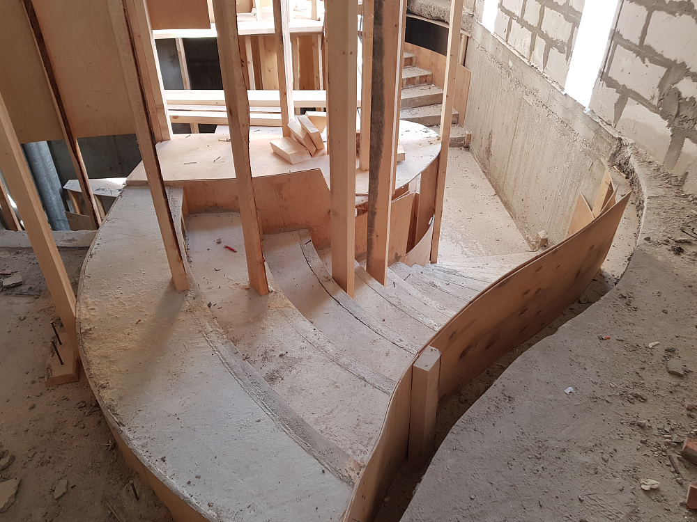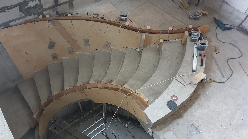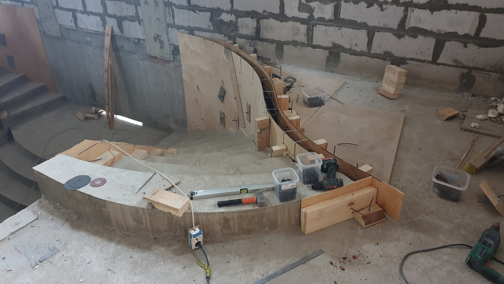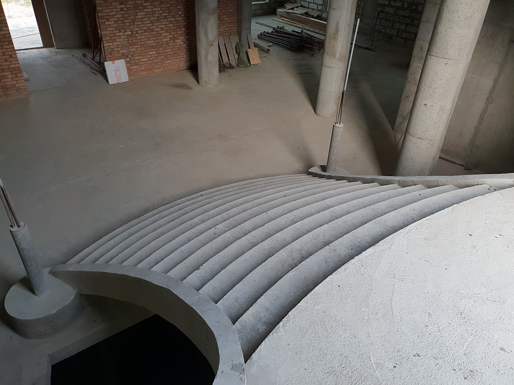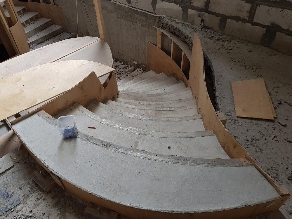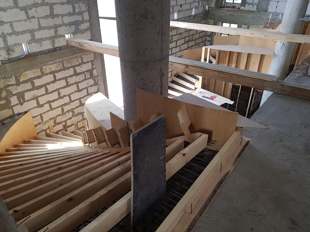 Каждый объект — это сочетание инженерного мастерства и строительной честности. Мы используем качественный бетон марки не ниже В25, армируем по СНиП, проверяем ровность и соответствие проекту. После демонтажа опалубки лестница готова к облицовке или может стоять в естественном виде.