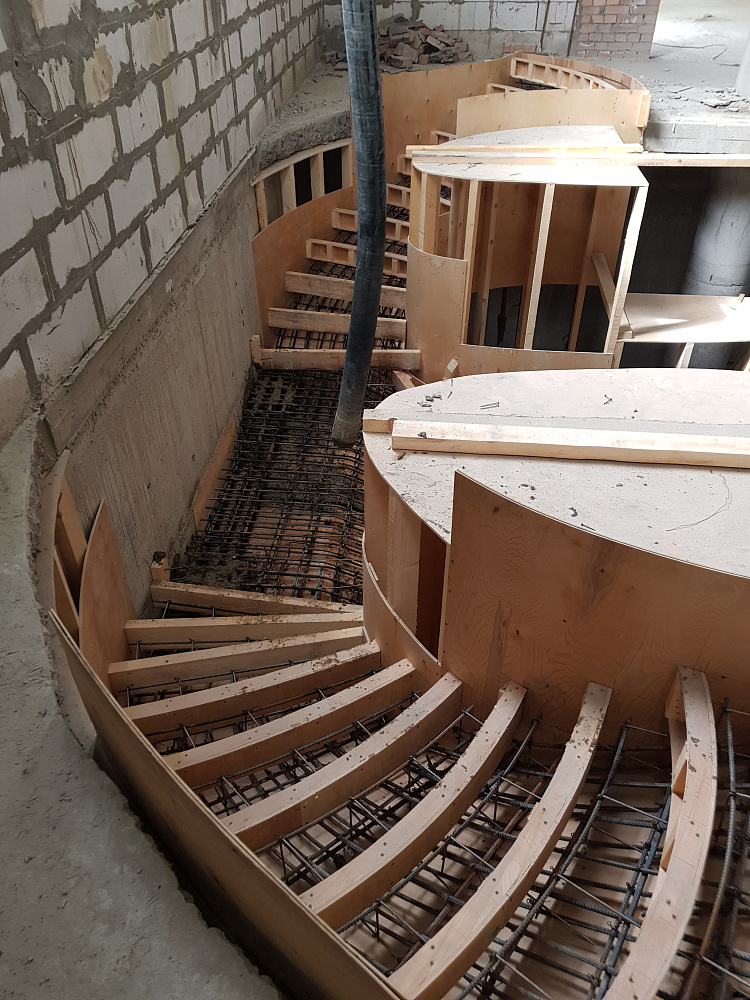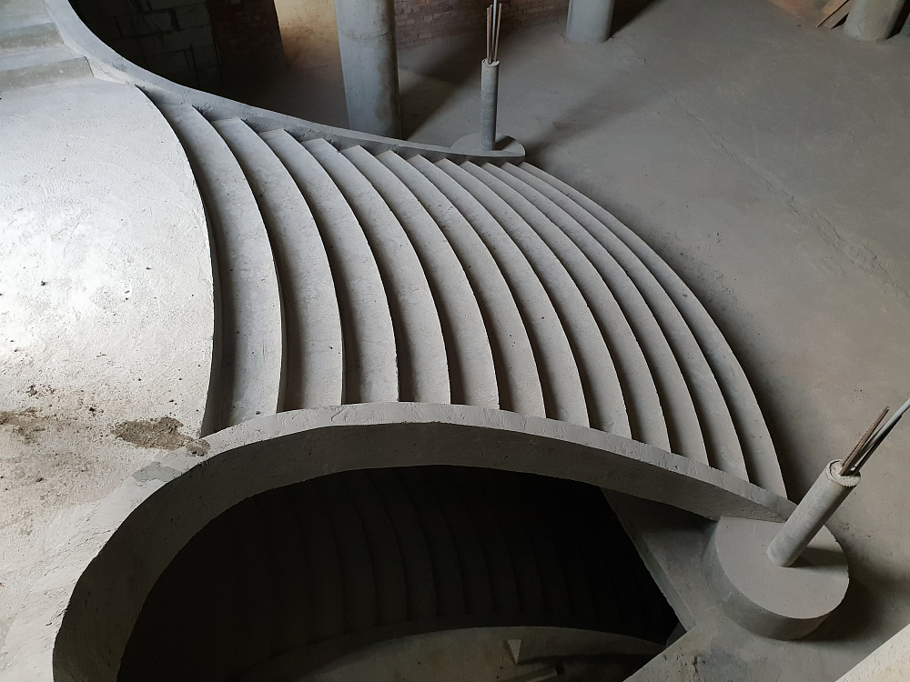 Благодаря технологии заливки в опалубку, мы можем создать лестницу практически любой конфигурации: прямую, Г-образную, П-образную, винтовую, с забежными ступенями. Это дает архитекторам и дизайнерам полную свободу творчества.