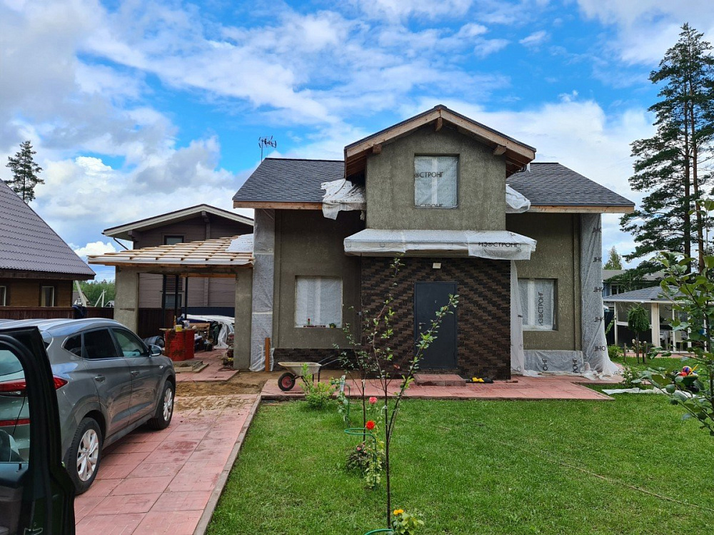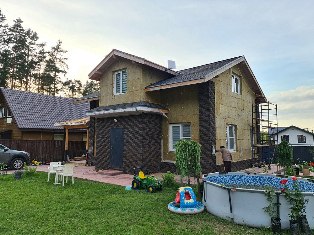 Отделка дома с гаражом имитацией бруса под ключ