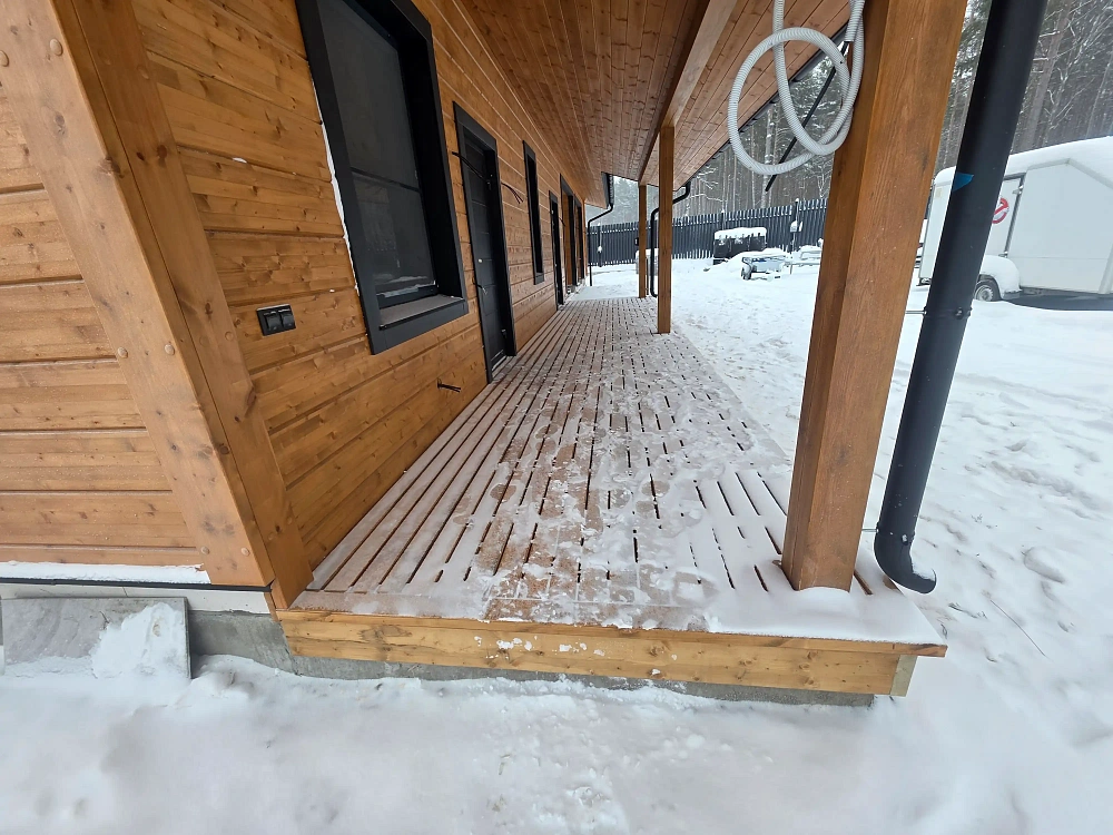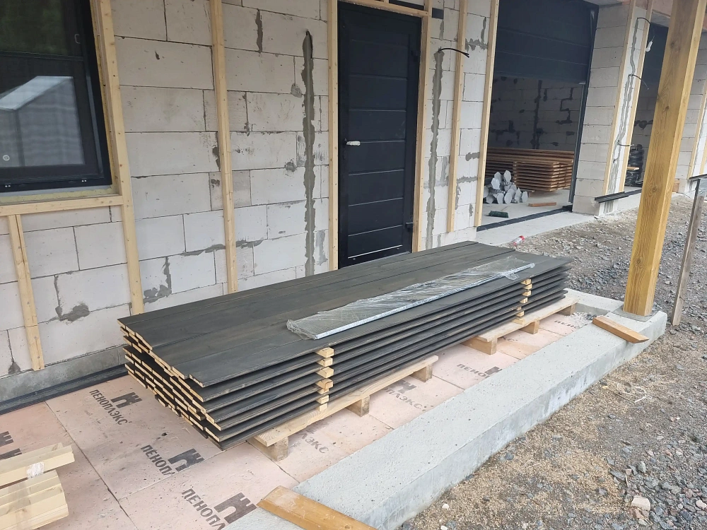 Заказчику было важно получить надёжный вентилируемый фасад с естественной эстетикой дерева, который гармонично впишется в загородный ландшафт Ленинградской области и обеспечит защиту газобетонных стен от внешних воздействий.