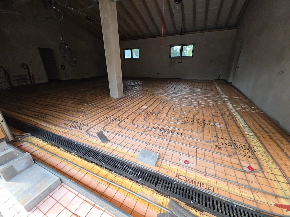 - Монолитная плита — надёжное основание, равномерно распределяющее нагрузку и предотвращающее неравномерную осадку здания;