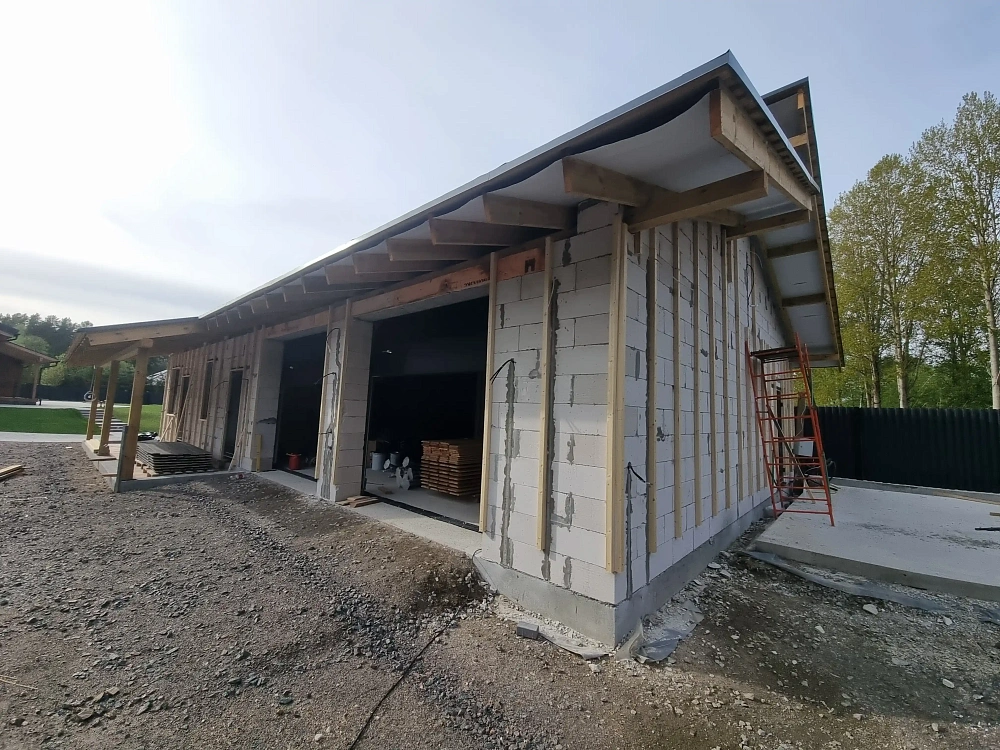 Вентилируемый фасад — оптимальное решение для домов из газобетона в климате Ленинградской области. Посмотрите также наш проект — строительство гаража из газобетона в скандинавском стиле.