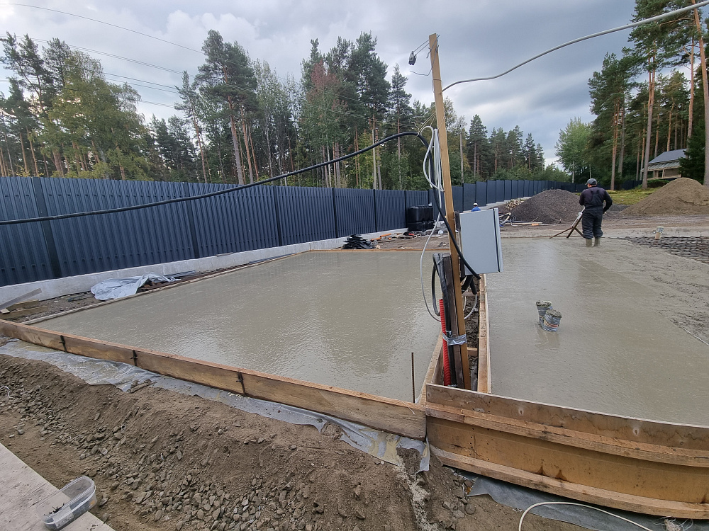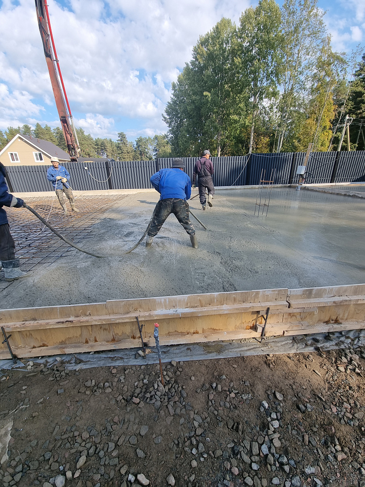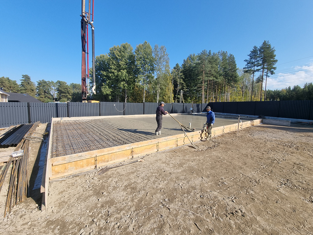 Все работы по устройству фундаментной плиты на объекте в Оврагах были выполнены всего за 10 рабочих дней — от подготовки основания до финальной заливки и выравнивания поверхности.
