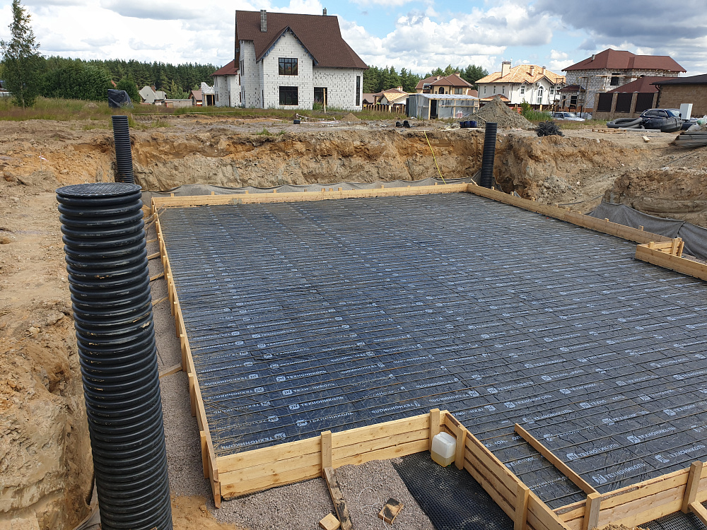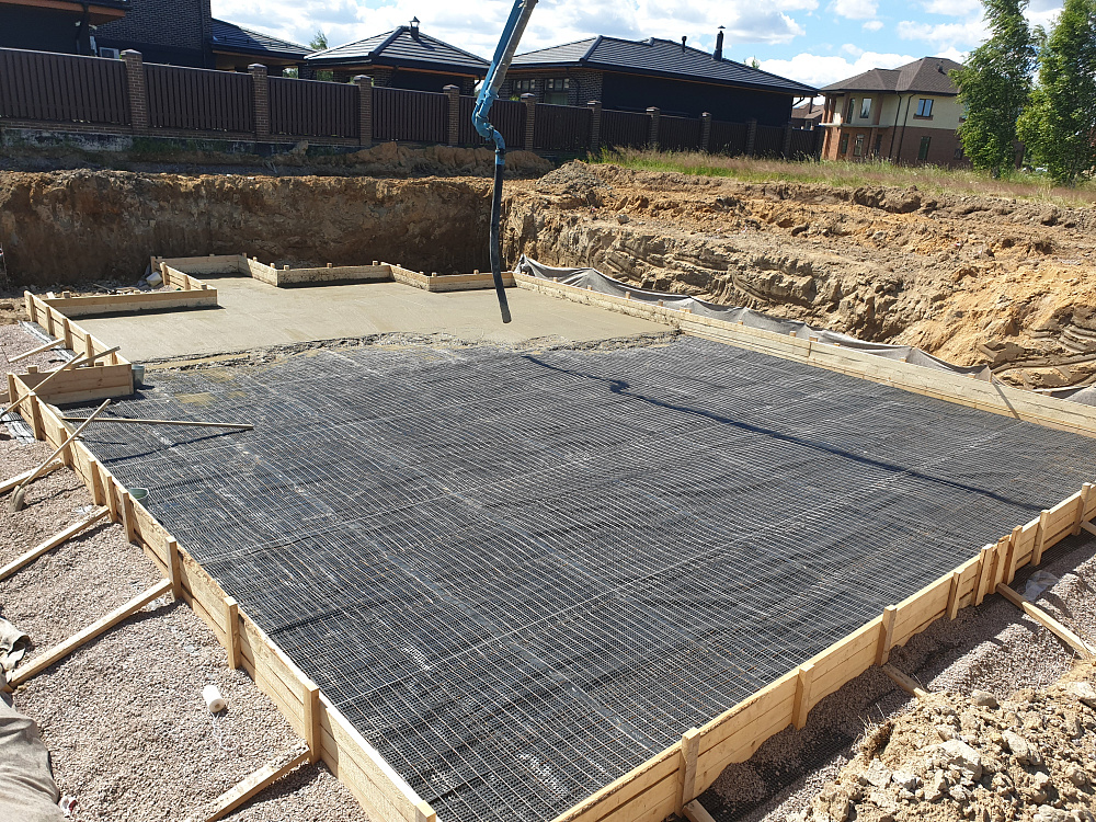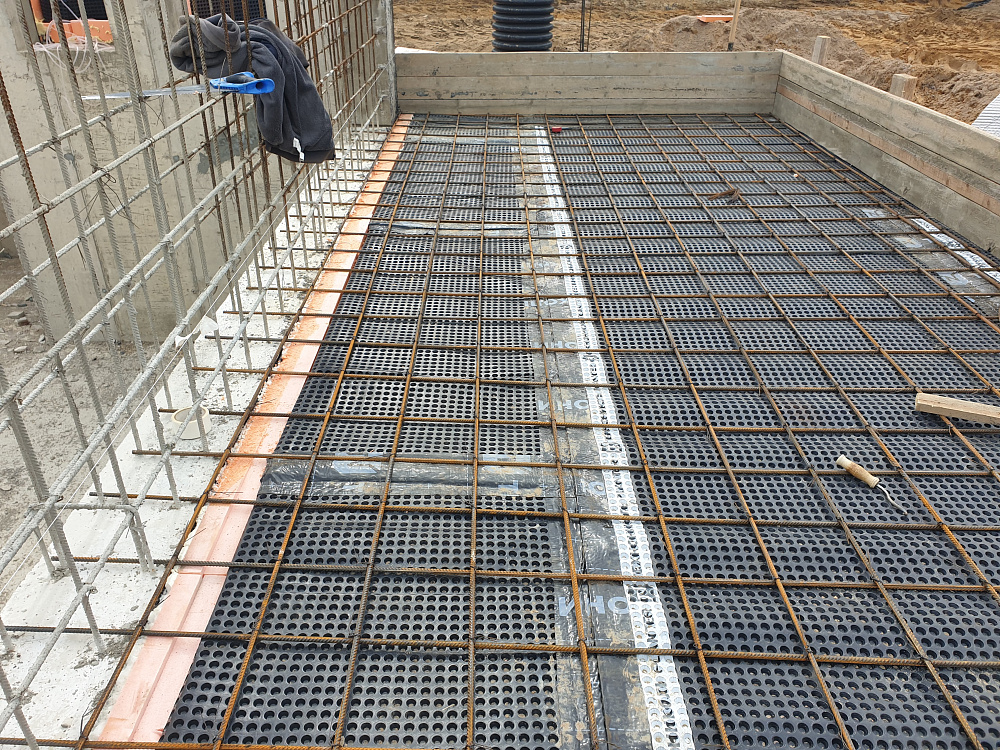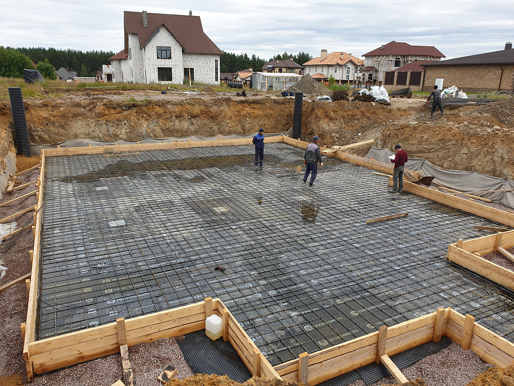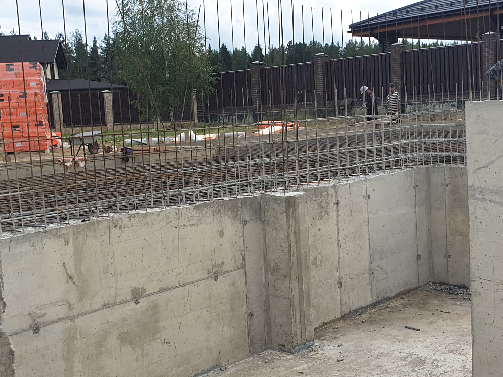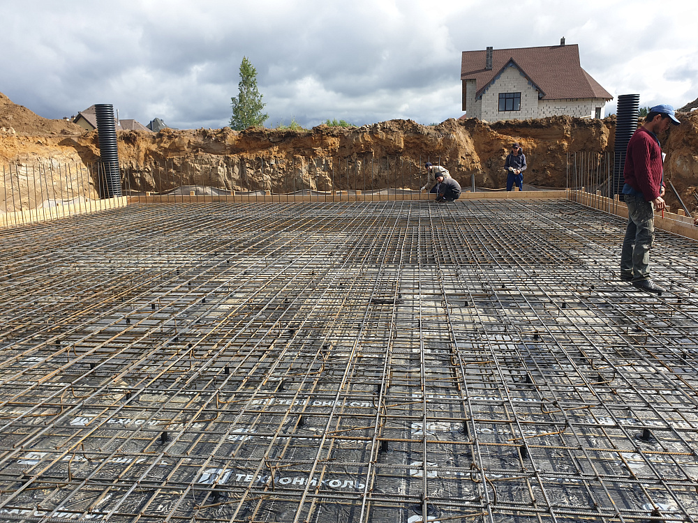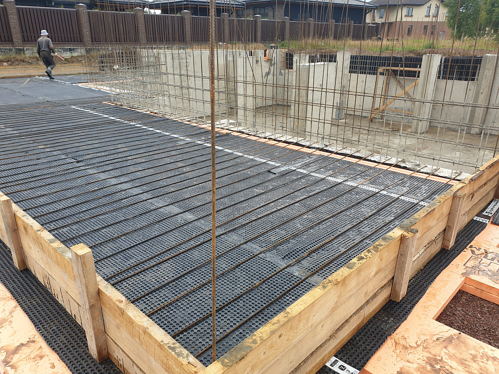 Фундаментная плита цокольного этажа выполнена по усиленной схеме: