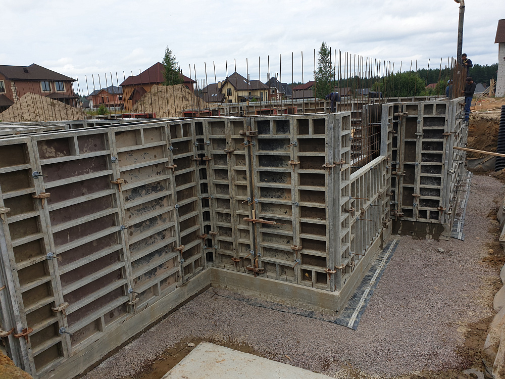 Для формирования стен арендовали профессиональную щитовую опалубку — это обеспечило идеально ровные поверхности и точную геометрию помещений.
