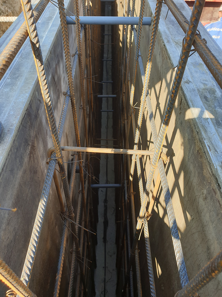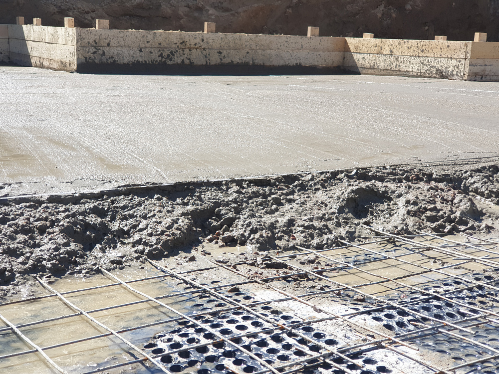 Бетон подавали автобетононасосом и уплотняли глубинными вибраторами для исключения пустот и воздушных полостей.